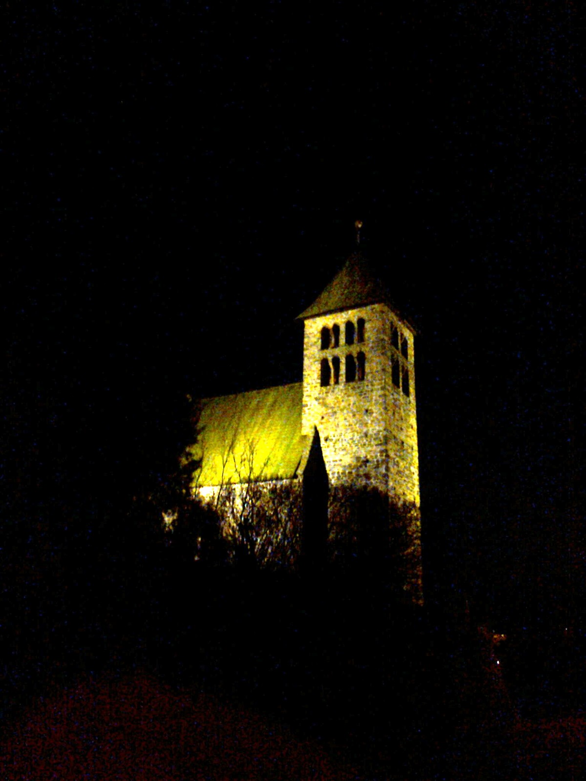 Bohužel bylo zavřeno, tak jsme si ho jen obešli, ale po tmě jsme už toho moc neviděli. Jen to, že je to úžasný románský kostel a že na jižní straně jsou dvě románská okénka, na severní pouze jedno.
