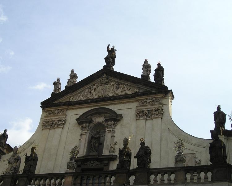 Kostel sv. Salvátora naproti Karlovu mostu na pravém břehu Vltavy, kostel přiléhající ke Klementinu