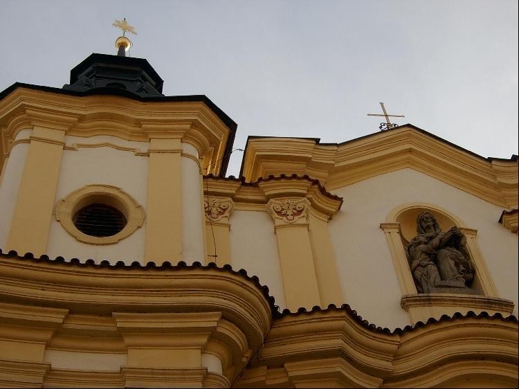 Stavba kostela Sv.Anny probíhala krátce před rokem 1735, kdy byl vysvěcen. Projektoval a stavěl jej plzeňský rodák Jakub Auguston a vyvrcholil jím svou barokní tvorbu v Plzni. Podélný kostel má tři prostorové jednotky s dvouvěžovým průčelím. Hlavní fasáda v šíři tří okenních os do Bezručovy ulice je po stranách obklopena věžemi. Její střední zvlněná část je prostoupena po stranách oblomenými pilastry na vysokém soklu. Obdobný pilastrový řád je i ve spodní části věžních rizalitů. Na něj dosedá kladí, nad prostředkem střední části se zvlněnou segmentově vypjatou římsou. Vstupní portál sedlového typu má profilované ostění ve štukovém rámci s uchy, s vrstveným vrcholovým klenákem.