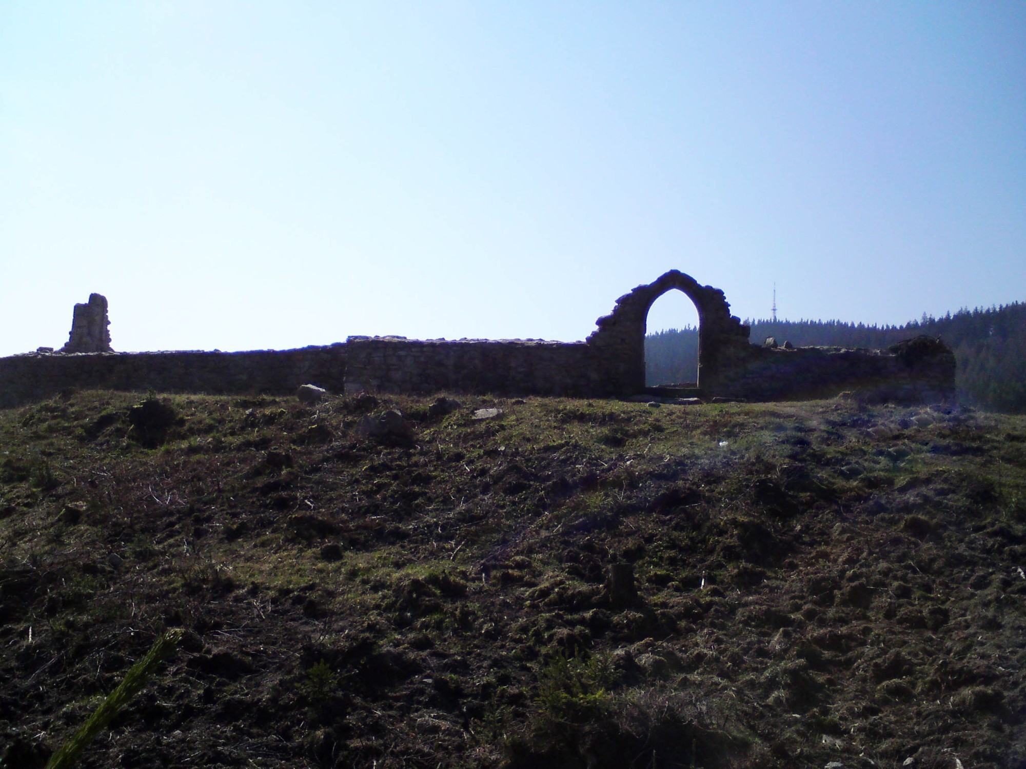 Zaniklý pozdně románský kostel o protáhlé hlavní lodi s pravoúhlým presbytářem vyrostl na skalním výchozu na staré cestě ze Sokolova do Lokte nedaleko obce Hrušková. Jeho délka byla asi 24 metrů a měl dva východy, jeden na jih a jeden na sever.
