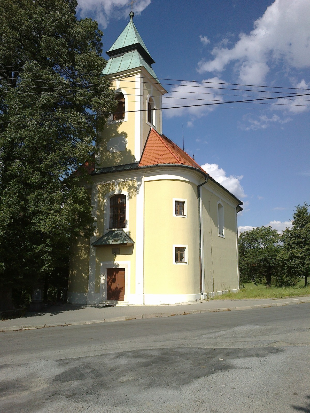 Vedle kostela se nachází kamenný kříž z roku 1880.