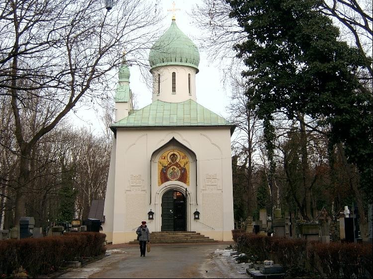 Na II. obecním hřbitově je ruský pravoslavný Kostelík, postavený v pskovsko-novgorodském stylu 16. st. Je obklopen hroby ruských porevolučních emigrantů, mezi nimi i hrob českého politika Karla Kramáře, velkého rusofila a jeho ženy Naděždy, která dala Kostelík postavit v letech 1924 - 25 za vydatné podpory českého agrárního politika Antonína Švehly. Tento chrám Zesnutí Přesvaté Bohorodice je unikátní památkou ruské architektury a malířství. Vnější i vnitřní výzdobu navrhl světové proslulý ruský malíř a grafik Ivan Jakovlevič Bilibin a jeho syn malíř Aleksandr Ivanovič Bilibin. Pravoslavný oltář (ikonostas) byl zhotoven podle návrhu prof. Vladimíra Brandta. Jednotlivé ikony namaloval K. M. Katkov s malířkou N. G. Jašvil. Pod zvonicí je vchod do krypty zasvěcené sv. Sofii. Na levé straně u vchodu je kamenná deska a bílý dřevěný osmiramenný kříž z r. 1928, základní kámen k nerealizovanému pomníku Věrnému ruskému vojínu.