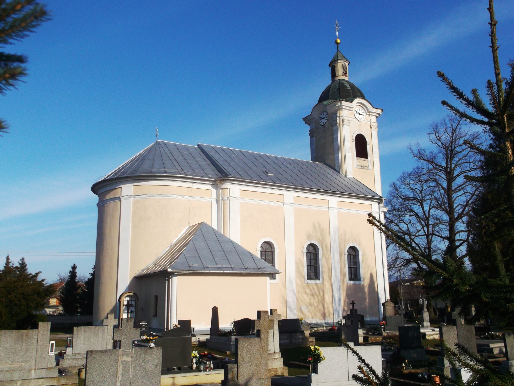Dominantou obce je rímsko - katolícky kostol svätého Kozmu a Damiána z roku 1735 postavený v barokovom slohu nitrianským biskupom na mieste staršieho kostola, ktorý sa spomínal už v roku 1577. Kostol bol viackrát prestavovaný až do dnešnej podoby. V júni 1983 bola prevedená výmena strešnej konštrukcie, vymenená bola aj nosná konštrukcia zvonice a zvonenie preinštalovali na elektrický pohon. V roku 1999 boli dodané a namontované aj vežové hodiny.