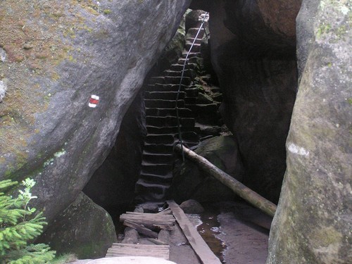 Nejromantičtější Hluboký a asi 1 km dlouhý kaňon v severozápadní části Broumovských stěn, ohraničený skalními bloky a věžemi 60-100 m vysokými, s pískovcovými jeskyněmi.Nejznámější je Kovárna, Myší díra nebo Mariánská jeskyně s soškou P. Marie.
