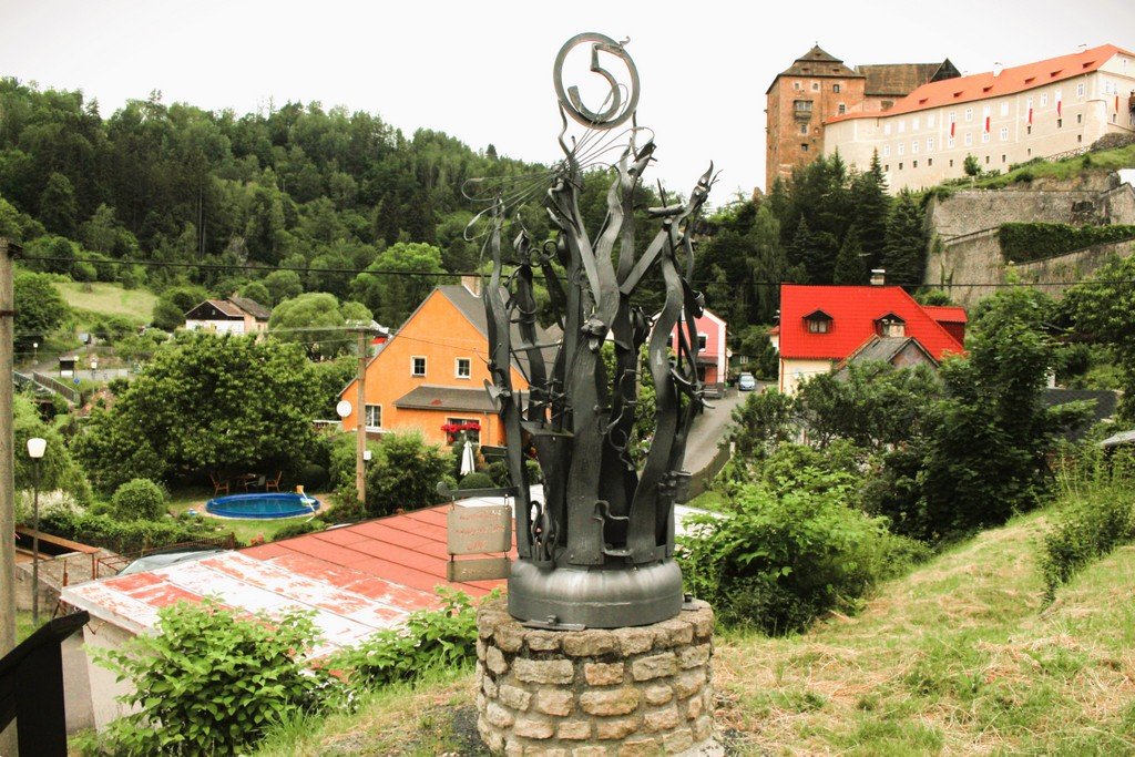 Při návštěvě Bečova není možné přehlédnout zajímavé kovářské práce. Jsou umístěny po celém městě, ale nejvíce jich najdete u hotelu Hradní Bašta. Práce jsou z jednotlivých sochařských sympozií a v letošním září se konal již 17. ročník. Od roku 2015 je v domě u hradní bašty Kovářské muzeum. Bylo sice v době naší návštěvy uzavřené, ale má údajně jen jedinou místnost, v níž je umístěna stará kovárna, do které je možné přes mříž nahlédnout. Zajímavější jsou práce umístěné ve městě. Při každém sympoziu je vyhlášen námět, který mají kováři podle své fantazie zpracovat. Kováři sem přijíždějí z celého světa a je jich vždy několik desítek. A že jsou jejich výtvory zajímavé, je patrné na první pohled.