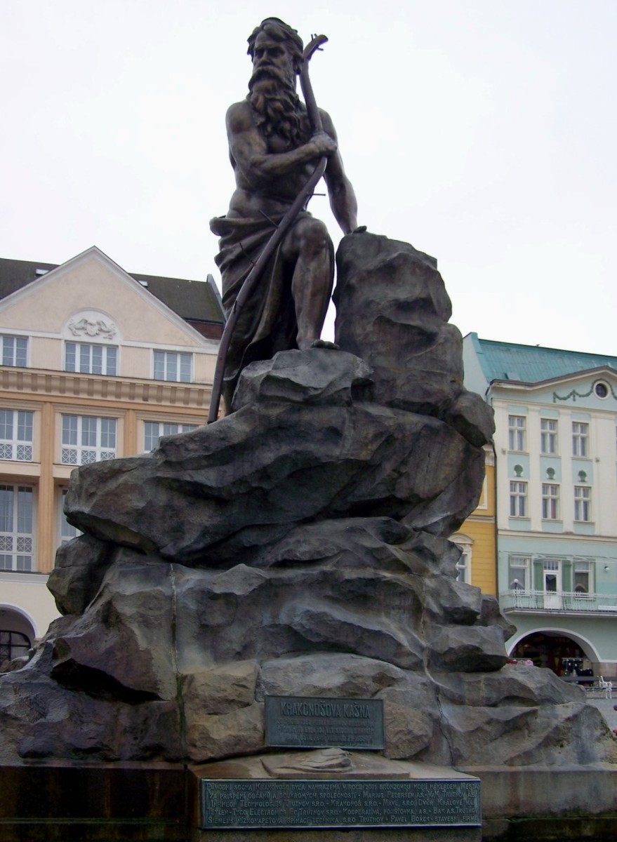 Uprostřed Krakonošova náměstí v Trutnově se od roku 1892 nachází Krakonošova kašna s monumentální sochou vládce hor, obklopeného gnómy - trpaslíky, která nahradila starší kašnu s drakem.