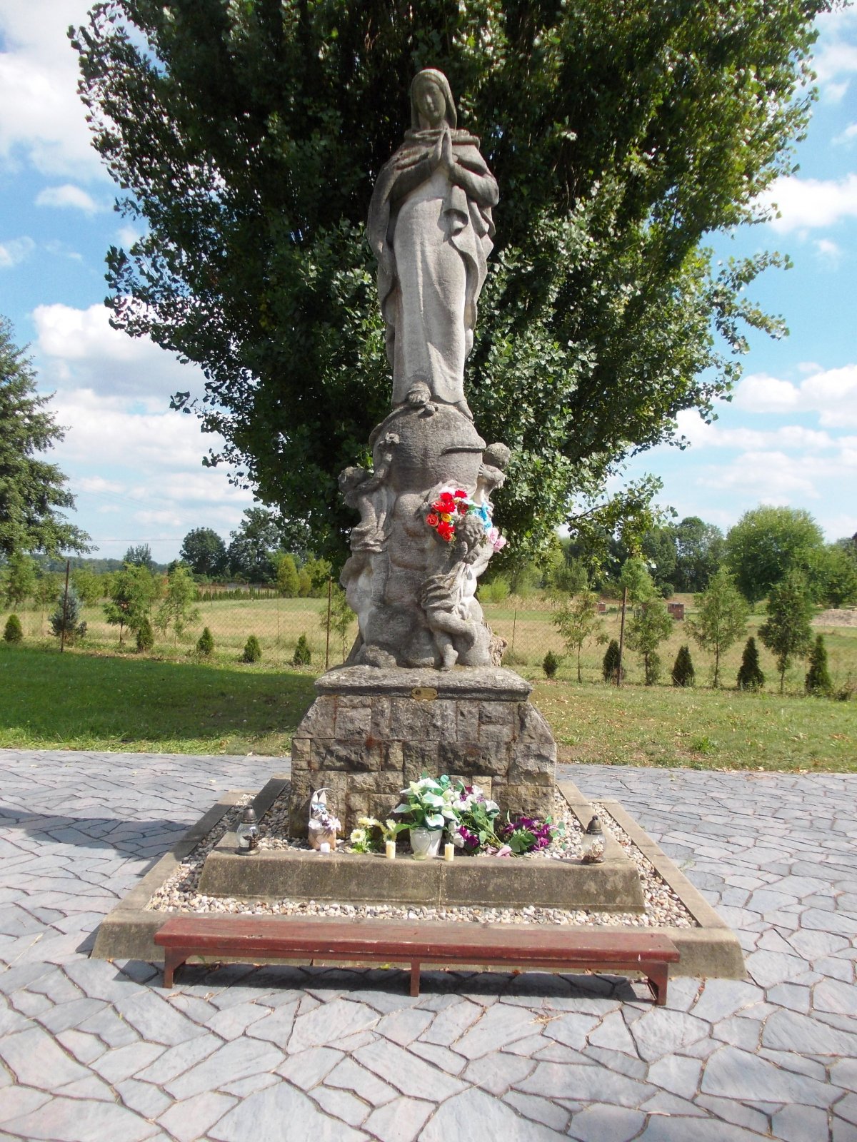 Příspěvky z okolí Křešice - dve sochy Panny Márie a ružová záhrada