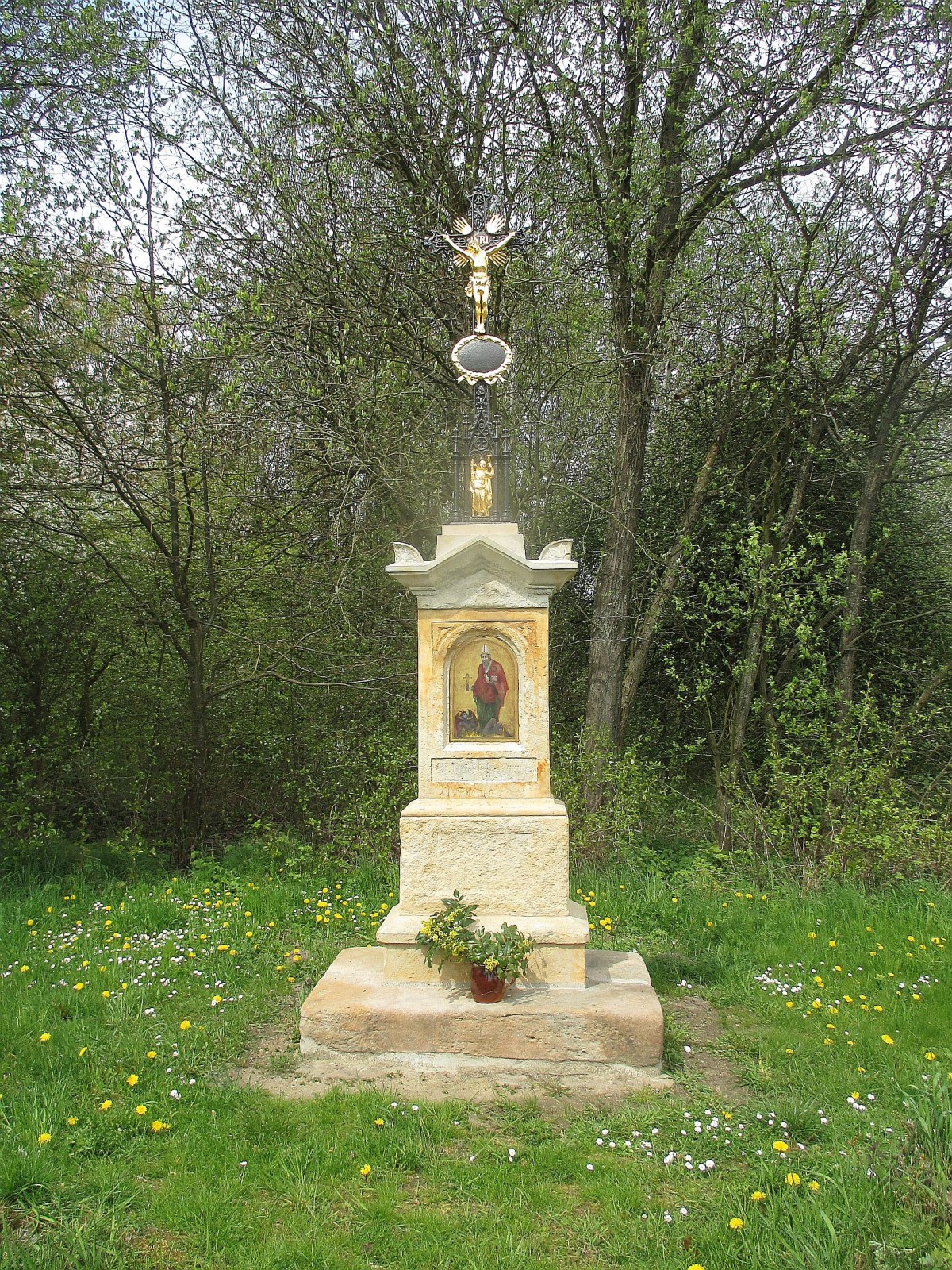 Krásný litinový kříž na kamenném soklu zde byl vztyčen z popudu Rosiny Riedl, manželky zdejšího učitele, v roce 1882 a zasvěcen byl sv. Prokopu.