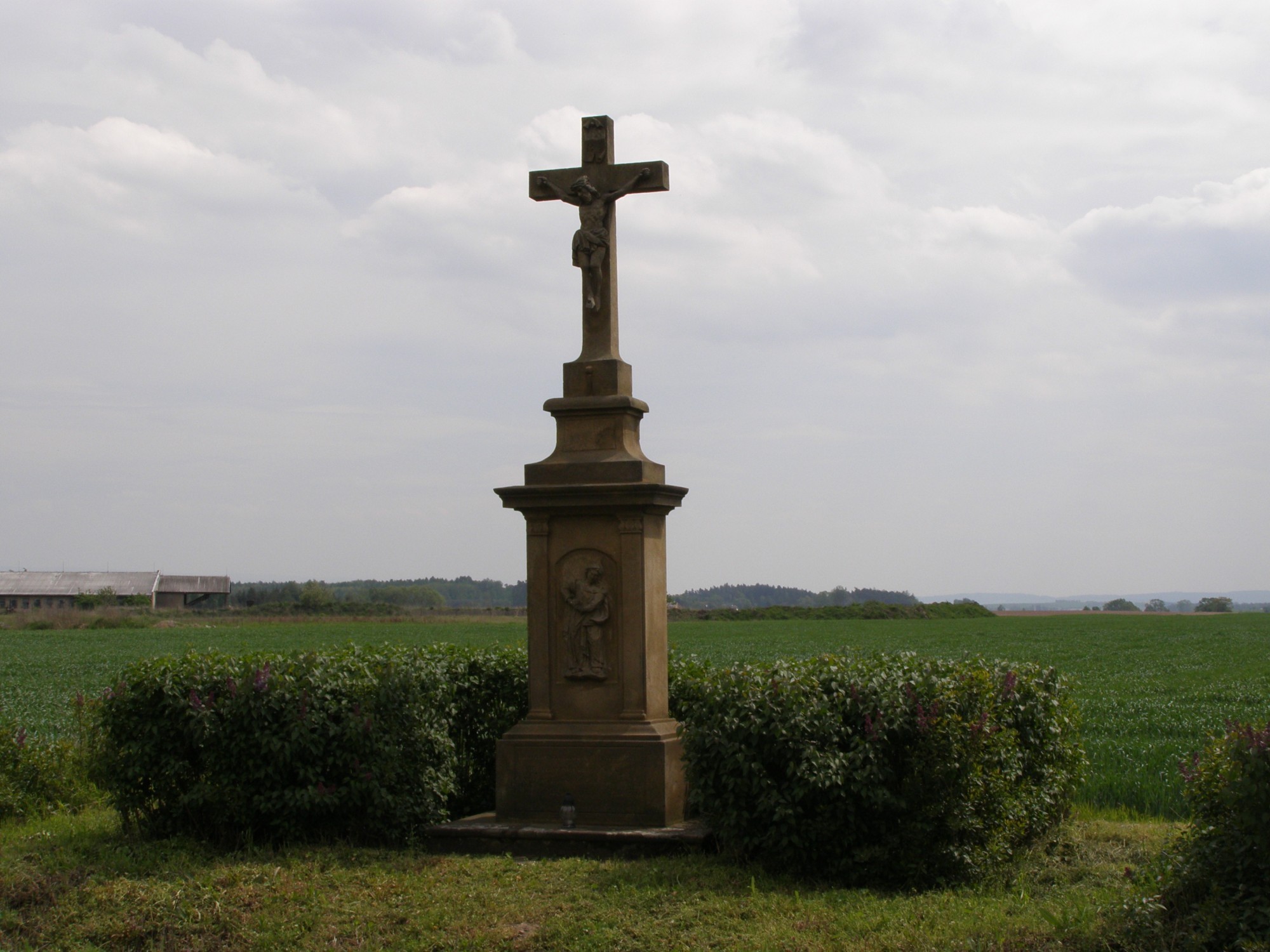Pískovcový pomník ukřižování se nachází u silnice od Smiřic k Vlkovu směrem k Jaroměři. Rok postavení kříže a kdo ho dal postavit mi bohužel známé není. Pomník zde vytváří hezký krajinotvorný prvek.