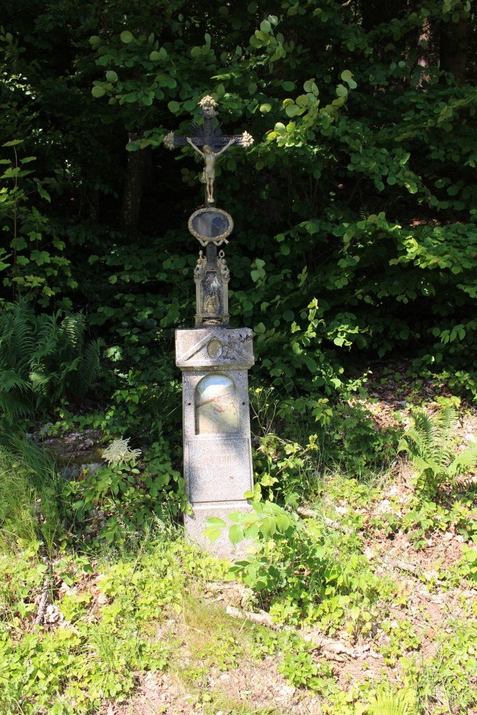 Původně tudy vedla Křížová cesta o čtrnácti zastaveních, osazena žulovými sloupky s mělkým výklenkem v horní části. Křížová cesta byla poničena, ale dochovalo se devět sloupků. Z osmi byla…