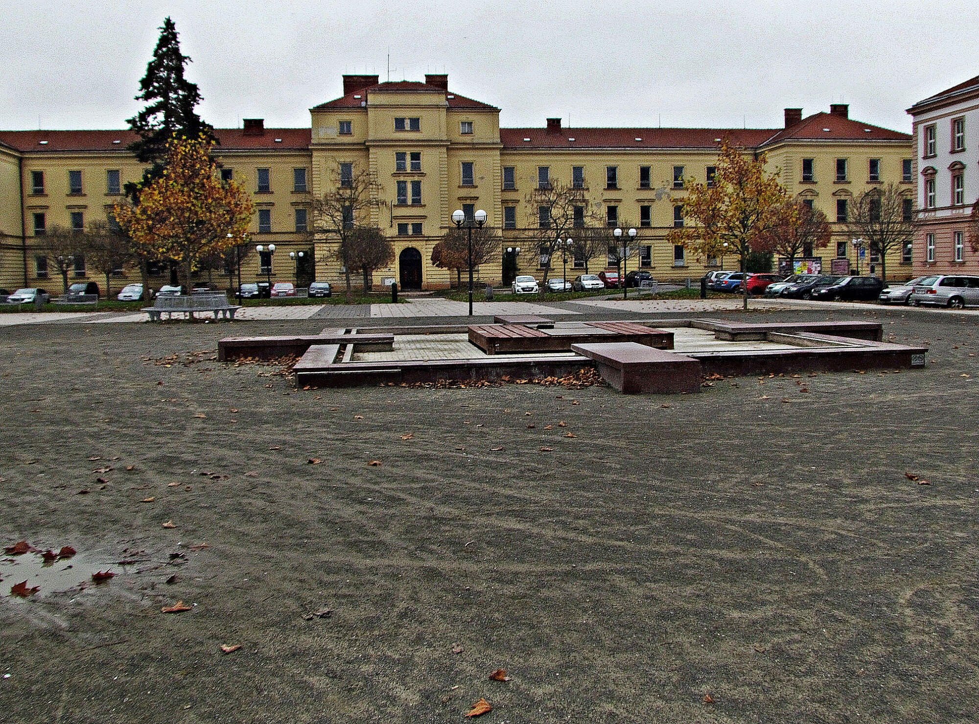 To my jsem ale neviděli, protože jsme se na Hanáckém náměstí ocitli jedné pošmourné listopadové soboty. Bohužel nás za takového počasí rozlehlé náměstí nijak zvlášť nezaujalo. Nevíme, jak to tady vypadá v létě, ale na sklonku podzimu tu bylo zeleně pramálo a plocha rynku nejvíce ze všeho připomínala bývalý „buzerplac.“