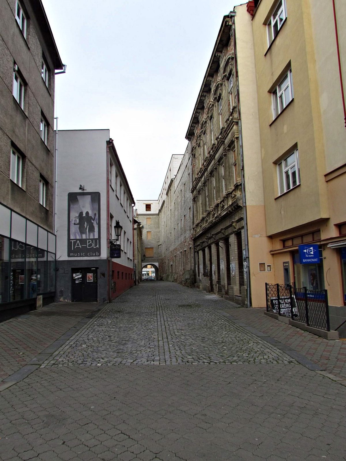 Stejně jako Prusínovská ulice je i ona zkratkou z Riegrova na Velké náměstí, ale vypadá úplně jinak. Prvních 60 m ji až po průsečík s ulicí Dobrovského lemují honosnější, až třípatrová stavení. Za nárožním domem s bankomatem Fio banky se ale její ráz dramaticky mění, ulice se zužuje a připomíná městský kaňon. Přibližně takový, jaký známe z amerických akčních filmů. Však my už dobře víme, že velkoměsta za „velkou louží“ netvoří jen honosné avenue, ale jsou protkána také krátkými uličkami se smrdutými haldami odpadků a u rozdělaných ohňů si medících bezdomovců.