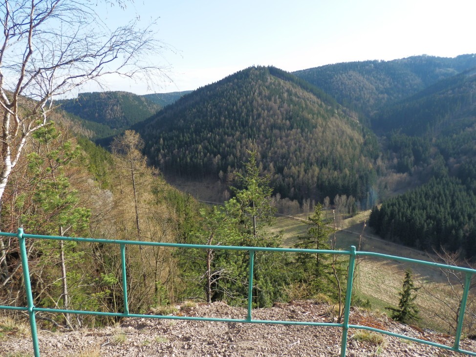Z vyhlídky zajištěné ocelovým zábradlím uvidíte od jihu po jihozápad několik zalesněných vrchů Gór Kruczych: Golicowa kopa (703 m n. m.), Bógdat (747 m n. m.), Góra Polska (792 m n. m.) a další. V severozápadním směru dohlédnete na Krkonoše s dominující Sněžkou. Téměř na severu leží ve vzdálenosti dvou kilometrů město Lubawka. Za ním se v dáli modrá pohoří Rudawy Janowickie.