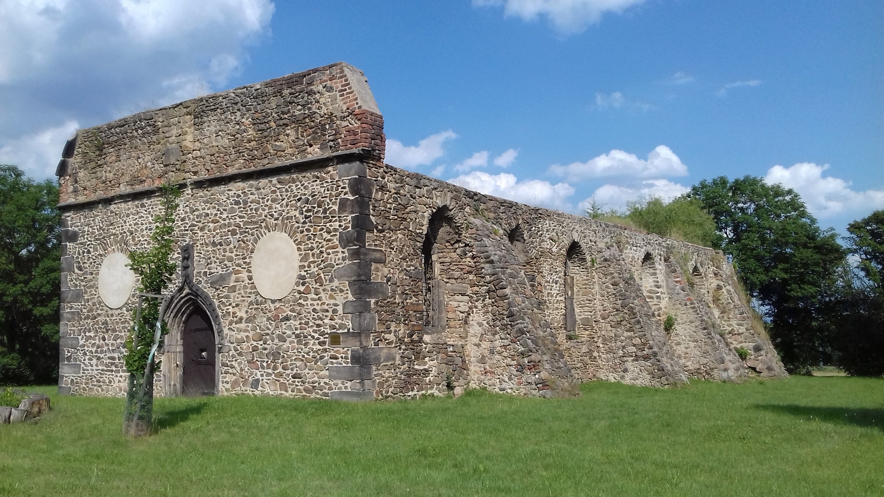 Kostol postavili v období 13. storočie, z tej doby sa zachovalo jeho presbytérium. Začiatkom 15. storočia kostol prestavali, došlo k jeho rozšíreniu strednej časti. Začiatkom 16. storočia pristavili jeho západnú trojloďovú časť. Ďalšie stavebné úpravy kostola prebehli v rokoch 1643 - 1677. Počas 30 ročnej vojny bol kostol značne poškodený. Kostol bol následkom ťažby uhlia postupne poddolovaný a z týchto dôvodov ho od roku 1891 prestali využívať.