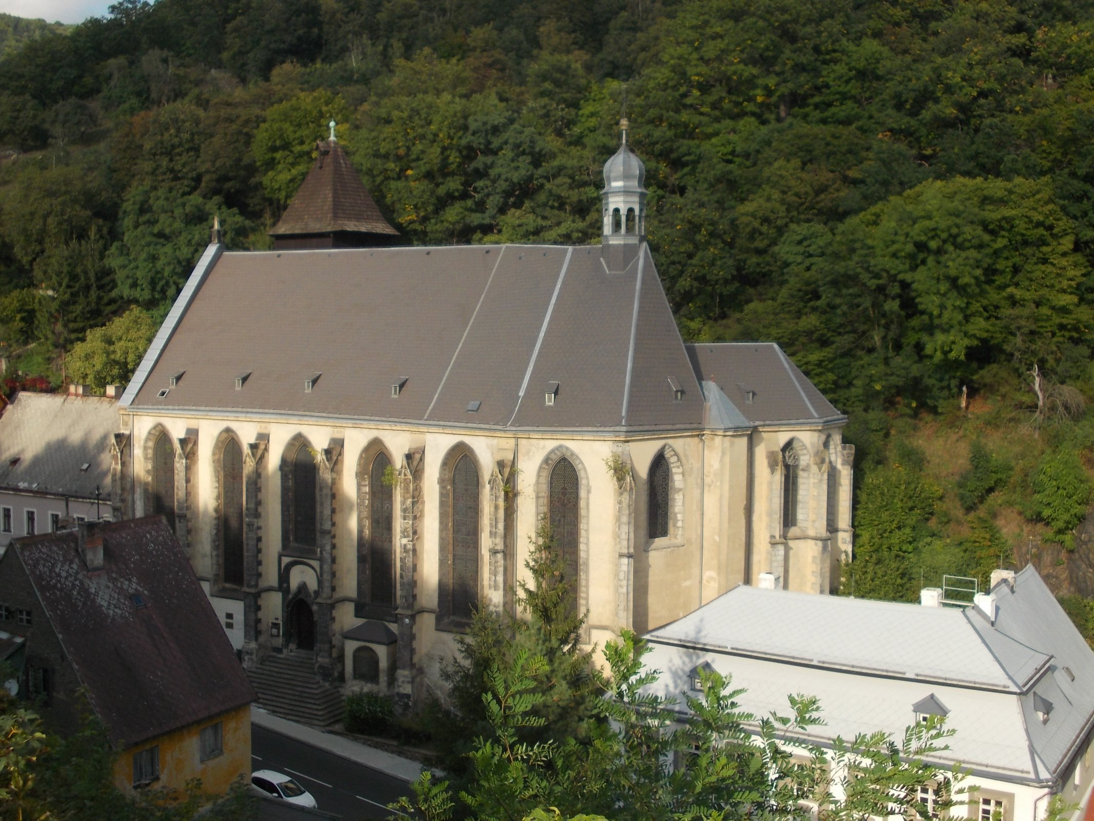 Rímskokatolícky kostol Nanebovzatia Panny Marie je postavený na ulici Husitská pod hradom Krupka.