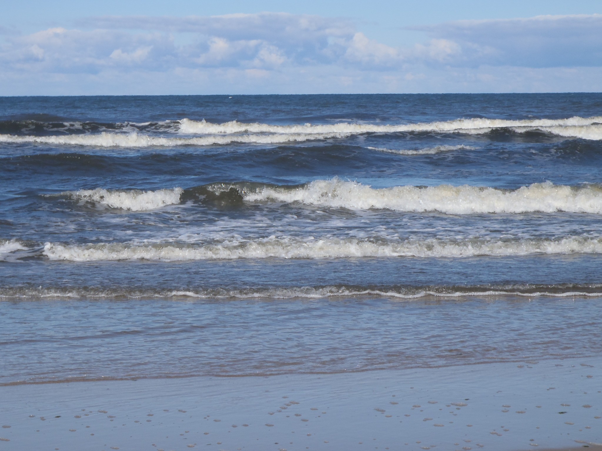 V říjnu to už na koupání není, ale prohlížení v klidu bez davů má rozhodně své kouzlo. Počasí bylo jako v létě, slunce a modrá obloha, také ovšem vítr. Procházeli jsme si jednotlivé letní apartmány, stánky podél ulic, parky a promenády. U moře lítalo plno racků, na břehu jsme viděli kromě škebliček dvakrát podivného živočicha. Bylo to kulaté, slizké a průhledné do růžova a mělo to oči, které na nás koukali. Fotka se bohužel nepovedla.