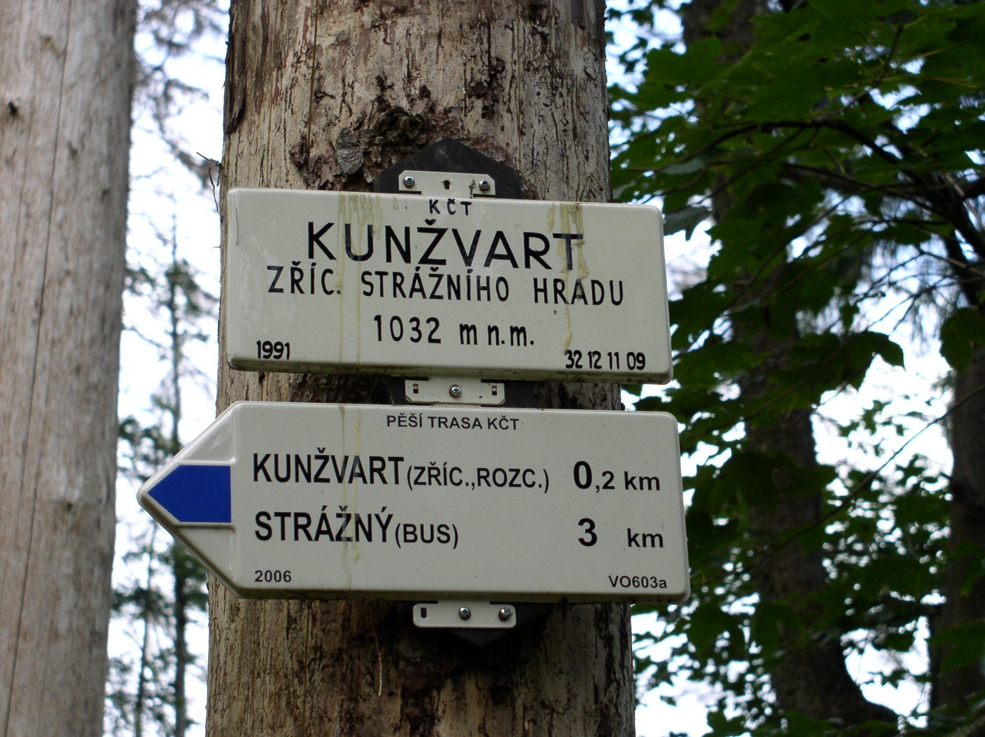 Zřícenina hradu Kunžvart se tyčí na skaním vrcholu hory Strážný nad obcí Strážný při hranicích ČR s Německem v nadmořské výšce 1032 m asi 5 km severně od hraničního přechodu. Je to náš jeden z nejvýše položených hradů. Přístup ke hradu je možný po modré turistické značce z obce Strážný.