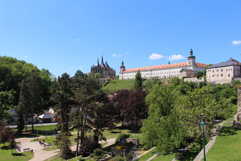 Kutná Hora patří mezi ta města, kde lze stále něco obdivovat. Mimo jiné jsou to i vyhlídky na starou část města a to z cesty nad údolím řeky Vrchlice. Která patří k těm nejhezčím, se snad nedá určit, protože každá má své kouzlo. Nás zaujala vyhlídka od Vlašského dvora. Řeka v údolí tady vytvořila oblouk a tím se otevřely výhledy k východu a západu. Prvním zastavením v této části je Havlíčkovo náměstí. Nalézá se na mírném svahu a jeho horní strana je složena z několika zajímavých stromů. O něco níže je Vlašský dvůr a park Bedřicha Pacáka. V travnaté ploše jsou sochy Karla Havlíčka Borovského a T. G. Masaryka. Sejde se po schodech do dolní části parku a po chvilce se otevře výhled, při kterém se tají dech. Chrám sv. Barbory a jeho okolí je pohádkou, která se nikde už neopakuje. Ale určitě lépe to za mě dopoví fotografie.