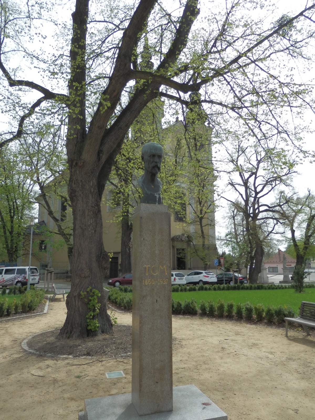 V parčíku na náměstí Antoše Dohnala nás uvítá poválečný pomník T. G. Masaryka s bronzovou bustou prezidenta od olomouckého sochaře Karla Lenharta (1904-1978).