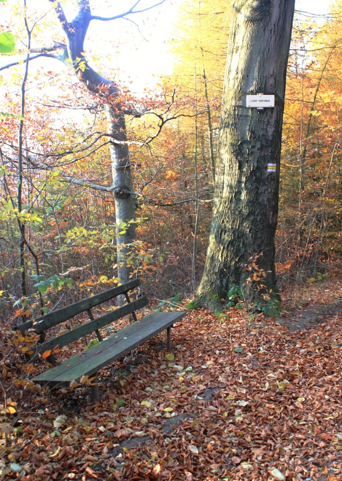 Je umístěna při hřebenové žlutě značené turistické cestě vedoucí z letoviska Hory u České Třebové k silnici do Kozlova. Z ústního vyprávění měla právě zde na lavičce, která zde i v minulosti byla, sedávat pod prastarým bukem slavná spisovatelka při svém pobytu Na Horách v létě 1851.