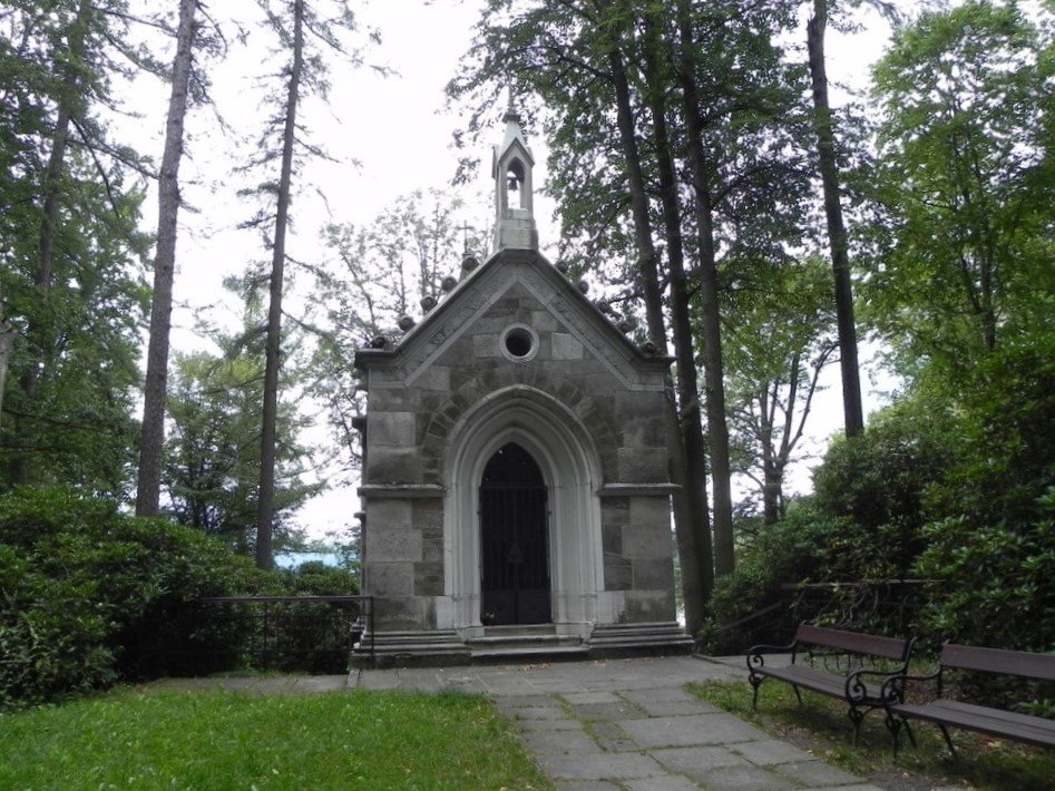 Poslední místo jejich odpočinku ukrývá kamenná stavba, ležící částečně ve svahu a která je zvýrazněná jen menšími hlavami dvou lvů. Ve spodní části se nachází krypta s rakvemi a nahoře se vypíná kaple. Její interiér zdobí oltář sv.Josefa, stěnu vlevo busta zakladatele lázní a napravo pak jeho pamětní deska.