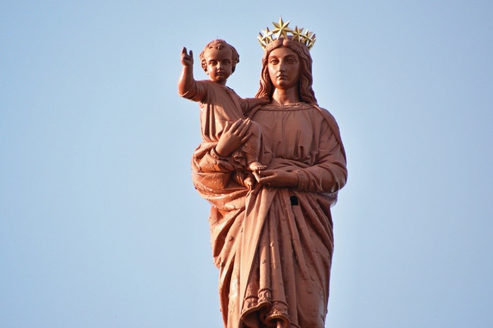 Monumentální „vyhlídková“ socha Matky Boží, tyčící se nad Le Puy, patří k nepřehlédnutelným dominantám i nejoblíbenějším památkám tohoto historického francouzského města. Je vysoká 16 metrů (s podstavcem 22,7 m), vznikla v letech 1856 až 1860 a jejím autorem je významný (v Louvru by mohli vyprávět) francouzský sochař Jean-Marie Bonnassieux. Jeho návrh porazil ve veřejné evropské soutěži více než 50 konkurentů.