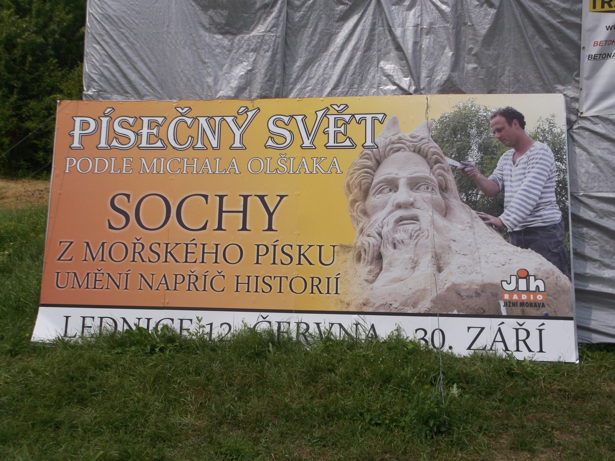 Pri ceste do Lednice sme uvideli upútavku na výstavu sôch z morského piesku. Hneď sme sa rozhodli, že sa na sochy pôjdeme pozrieť. Smerovníky nás doviedli až k parkovisku, kde prebiehala výstava "pod holým nebom". Výstava prebieha v obci Lednice, neďaleko od zámku od 12.6. do 30.9.2014.