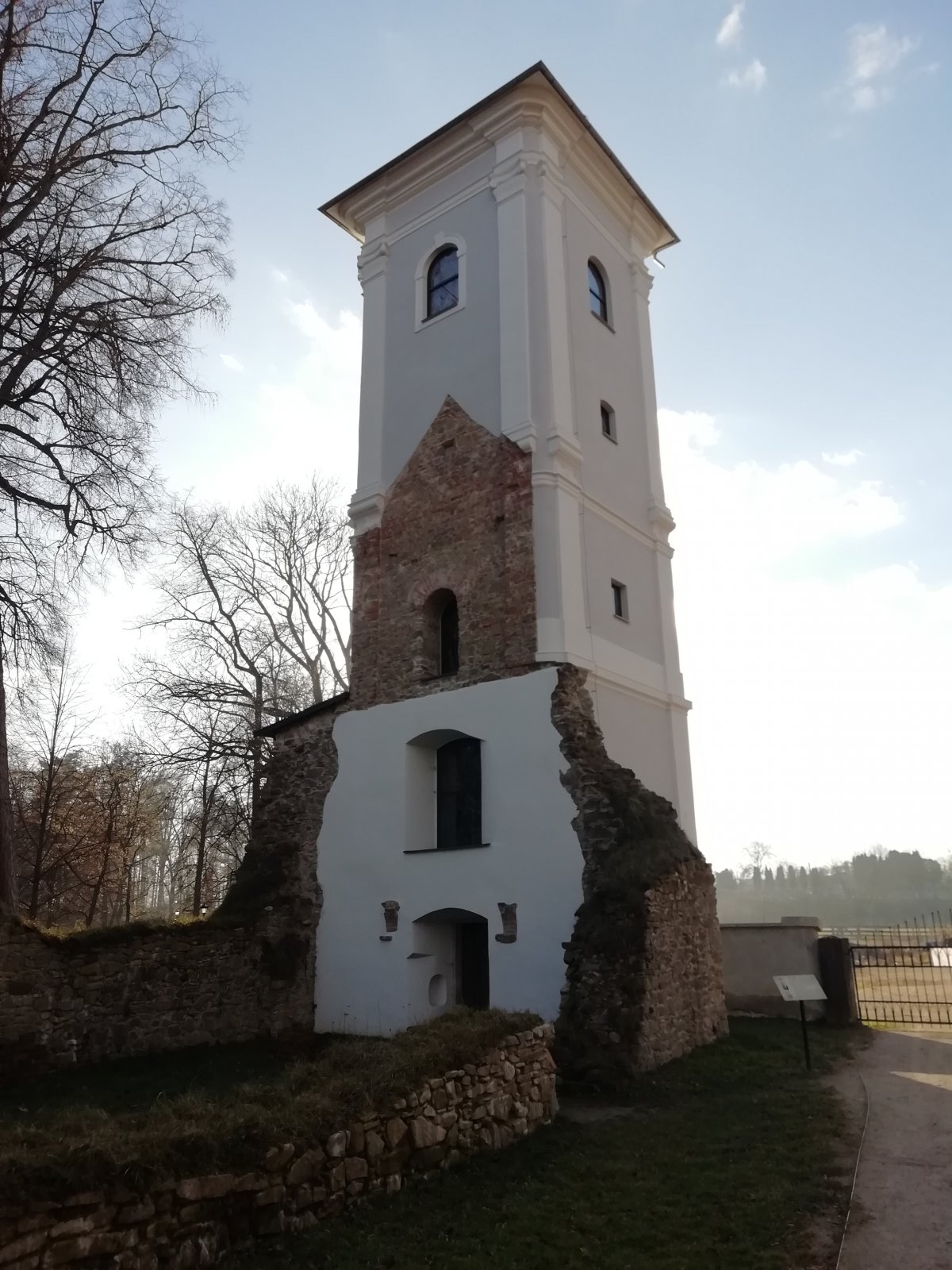 Příspěvky z okolí Lednické Rovne - opravená veža starého kostola v parku