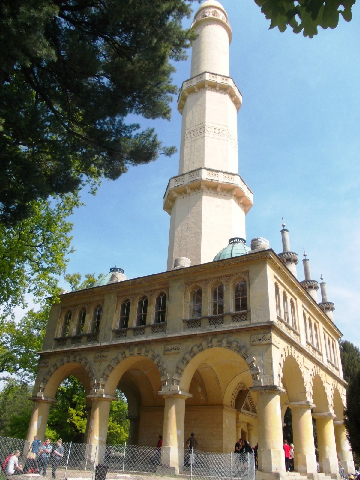 Jedna z prvních romantických staveb rozsáhlého Lednického parku je romantická stavba v maurském stylu – minaret, postavený 1,5 km severně od zámku, při břehu Zámeckého rybníka podle projektu architekta J. L. Hardtmutha v letech 1797-1802. Původně zde měla stát na přání Aloise Josefa I. z Lichtenštejna i mešita. Uvádí se, že minaret nechal kníže postavit natruc poddaným, kteří se nemohli domluvit na umístění kostela v Lednici. Minaret, který stojí na dřevěném roštu z 96 silných dubových kmenů sepjatých železnými sponami, uloženém v močálovité půdě na 500 olšových pilotech dlouhých přes 17 m. Přesto se stavba v kopuli podle posledních měření během 2 hodin vychýlí o 40 cm.Smile Minaret je svojí 60 metrů vysokou štíhlou věží nejvyšší stavbou tohoto druhu v neislámských zemích. Věž členěna třemi Ochozy, ukončená kamennou přilbou se zlatým půlměsícem, stojí uprostřed jednopatrové stavby čtvercového půdorysu s arkádami v přízemí. V prvním patře je osm vyhlídkových salónů zdobených nástěnnými malbami a podlahovou mozaikou s použitím maurských ornamentů, které dřív sloužili Lichtenštejnům jako místo pro sbírky orientálních předmětů. Sály jsou dnes nepřístupné. Na stěnách minaretu jsou arabské nápisy s citáty z koránu. Na nejvyšší ochoz ve věži vede 302 schodů a jsou odtud nádherné pohledy po Zámeckém parku s rybníky, zámek a romantické stavby. Za dobré viditelnosti je prý vidět i věž Svatoštěpánského dómu ve Vídni. SurpriseProhlídky Minaretu jsou od dubna do října, pěšky po značených cestách, vyhlídkovým kočárem nebo vyhlídkovou lodí. Na kole je parkem jezdit zakázáno.