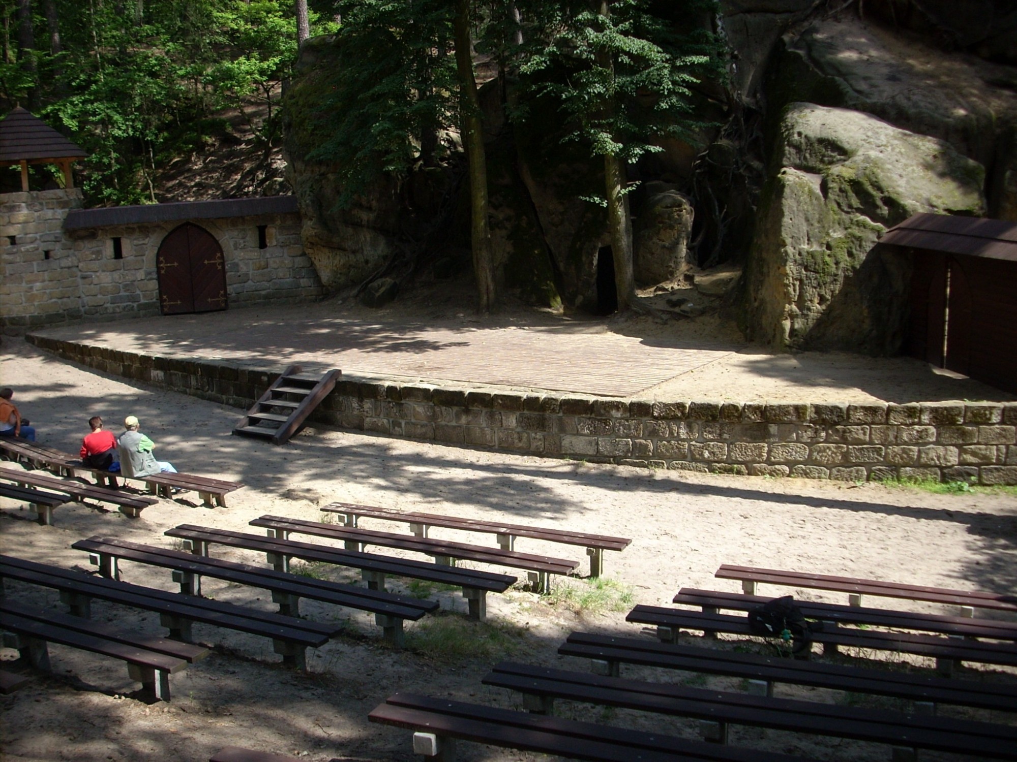 Lesní divadlo bylo založeno v roce 1921 "Divadelním spolkem Sloup". Do pískovcové skály zde byly vyhloubeny chodby, postavila se zde pískovcová věž, podium, stěna s gotickou branou a samozřejmě nemůžeme zapomenout na hlediště pro 2000 diváků.