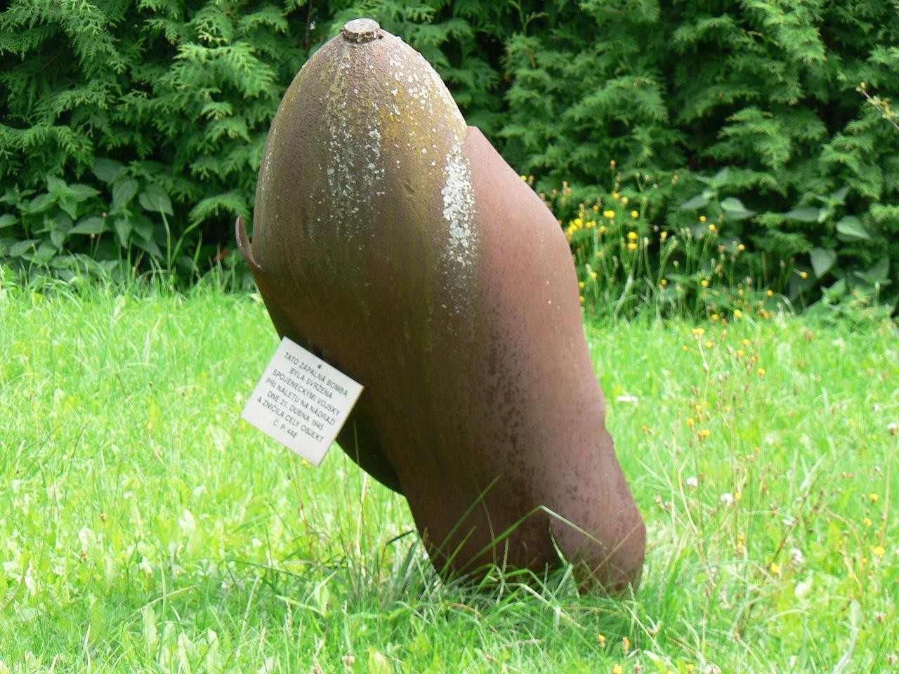 Ke konci druhé světové války provedla spojenecká vojska značné množství náletů na území tehdejšího protektorátu. Cíle byly jasné, šlo o narušení zásobování a přesunů vojska, a tak došlo i k bombardování nádraží v Horažďovicích – předměstí. Tehdy, tuším, mělo nádraží název Babín a řada lidí starší generace tento název stále užívá. K leteckému útoku na tento cíl došlo 21. dubna 1945. Kromě jiného zasáhla zápalná bomba dům naproti nádraží a zcela jej zničila. Jak a kdy byla nalezena nevím, ale dnes stojí na soukromé zahradě a připomíná onen tragický den. Horažďovice – předměstí se nachází na mapě KČT č. 68 Pootaví a bombu lze vidět u hostince proti nádraží, vlevo od budovy, v zahradě se živým plotem.