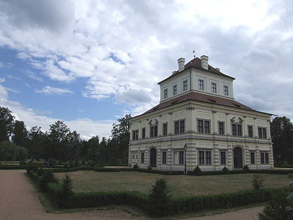 V letech 1673 – 1679 byl v centru tehdy proslulé zahrady u ostrovského zámku postaven podle návrhu pražského stavitele Abrahama Leuthnera letohrádek, který se tak stal ještě s dalšími stavbami součástí manýristické zahradní kompozice. Zahradní stavby, sochařská a hlavně vodní díla tu byla rozložena vzorů slavných, především italských zahrad tehdejší doby. Samotný letohrádek má přehlednou raně barokní dispozici se čtvercovým půdorysem a čtyřmi průjezdy s identickými portály, které vstupují do osmiúhelníkové ústřední haly. Interiér je vyzdoben především italskými mistry, kteří zde pracovali v 90. letech 17. století. Zřejmě šlo o malíře Paola Manniho a Lazara Maria Sanguinettiho a štukatéry Joahnna Petera Palliardiho a Domenica Salize. V dalších letech byly přidány i čtyři grotty, poplatné dobovým tendencím.