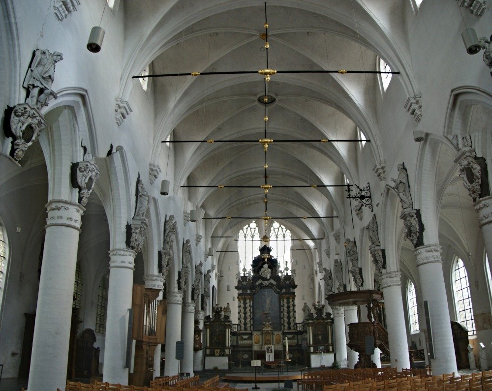 Gotická trojlodní bazilika o deseti klenebmích polích má obdélníkový půdorys a je bez transeptu i architektonického zvýraznění chóru. Nápis na pilíři napravo od severního portálu uvádí začátek stavby, tedy rok 1305. Sedm východních polí pochází z fáze výstavby 14. století, zbývající tři západní pole jsou z 15. století a současná podoba kostela je výsledkem renovace, kterou zde v letech 1978 až 1985 provedl architekt Robert J. Vandendael. V interiéru se navíc jednalo o první obnovu ve Flandrech, při které byly předem intenzivně studovány veškeré aspekty obnovy omítek.
