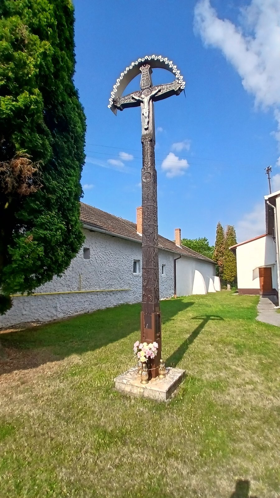 Levice - Kalinčiakovo - Kostol Ružencovej Panny Márie a drevený detviansky kríž