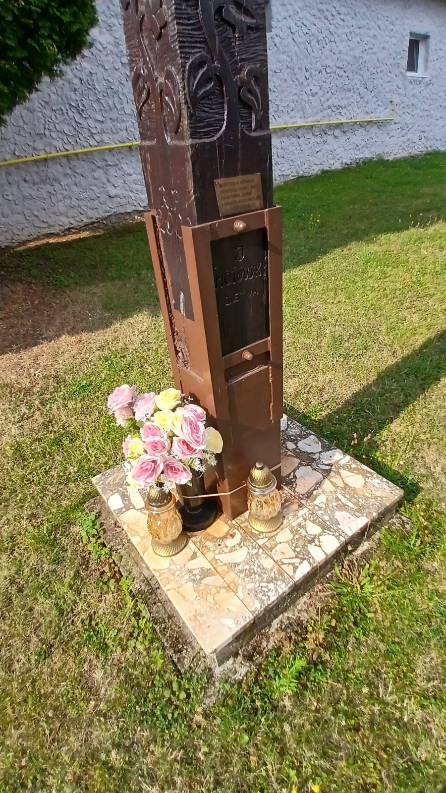 Levice - Kalinčiakovo - Kostol Ružencovej Panny Márie a drevený detviansky kríž