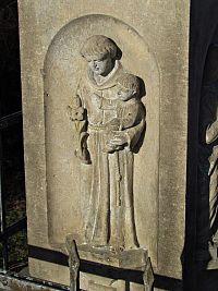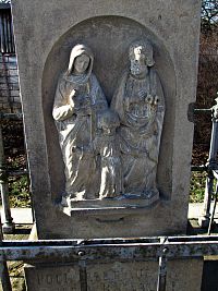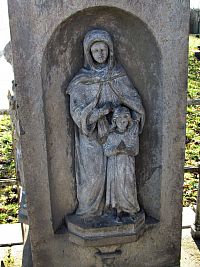 Při příchodu do obce od Loukova mne na jejím okraji zaujal první kamenný kříž, vypínající se z nízké čtvercové ohrádky tvořené železnými pruty. (Na mapách.com kupodivu jeho ikonka chybí.) „Ku cti a chvále Boží“, jak se píše na zadní straně vysokého soklu, jej nechala roku 1915 zhotovit rodina Hlavíkova. Práci odvedl velmi schopný kameník a podstavec ozdobil na třech světových stranách zdařilými reliéfy Svaté Rodiny, sv.Antonína Paduánského a sv.Anny s mladičkou Panenkou Marií.