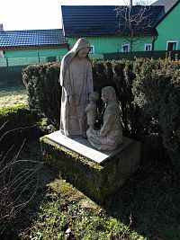 V parčíkovém prostoru hned vedle zbrojnice stojí mezi starými stromy kamenný kříž, což vše tvoří velmi romantické zákoutí a za parčíkem se nachází areál dětského a fotbalového hřiště. Naproti u silnice se za křižovatkou vypíná Pomník obětem 1.světové války zbudovaný roku 1928. U křižovatky s hlavní silnicí do Bystřice pod Hostýnem a vedlejší do Loukova zdobí parčíkově upravené prostranství novodobé kamenné sousoší znázorňující máti Panny Marie – sv.Annu, její dceru a vnuka – malého a k ní kráčejícího Ježíška. (Autora díla se mi nepodařilo zjistit).