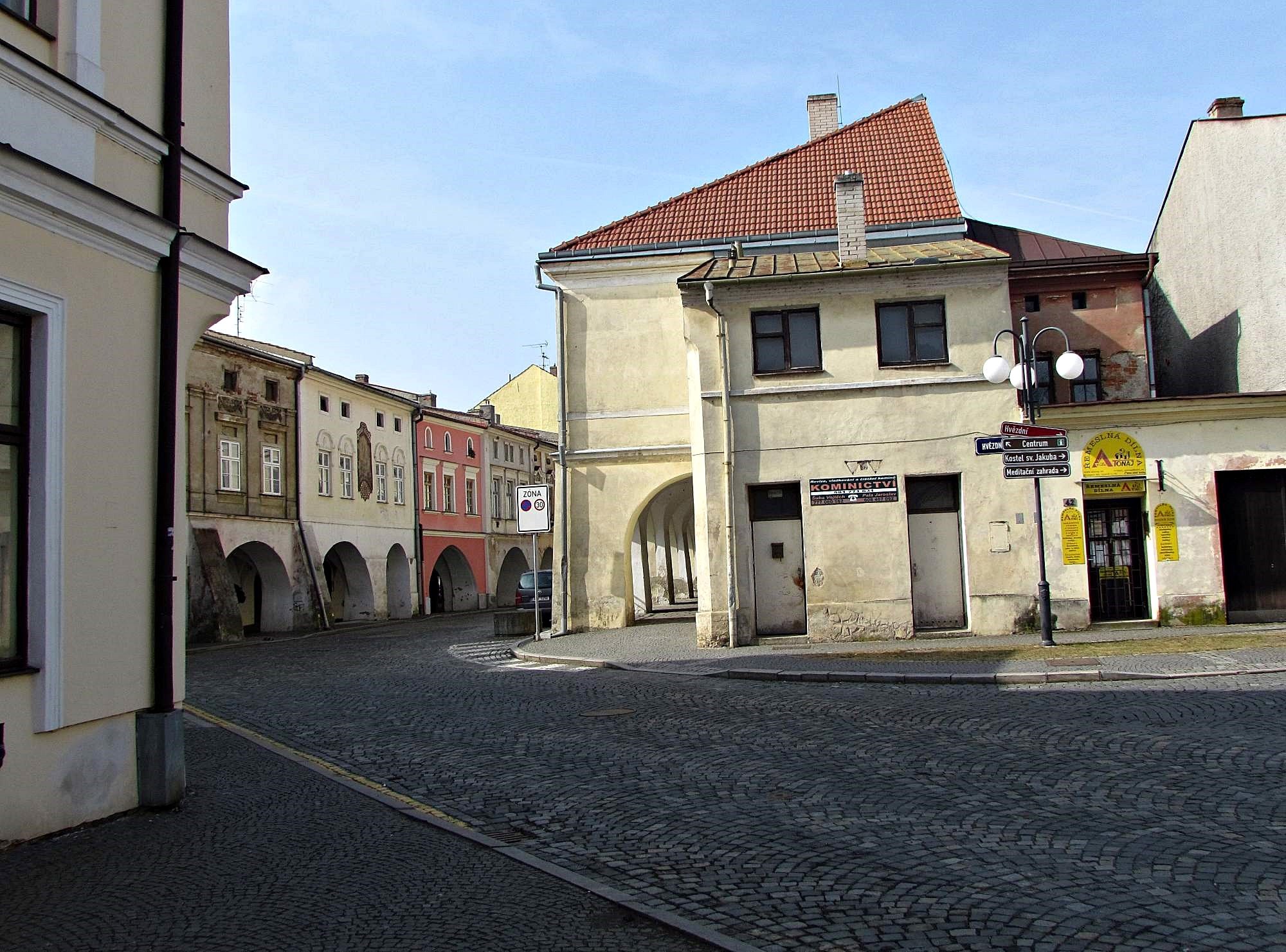 Tato asi 160 m dlouhá ulice začíná u kruhového objezdu na východní straně historického městského jádra a na západě ústí na náměstí T.G.Masaryka. Směrem k severu z ní vybíhá ulice Stará a poté Hvězdní, která nabídne průhled na věž renesanční zvonice a vysokou věž farního kostela sv.Jakuba.