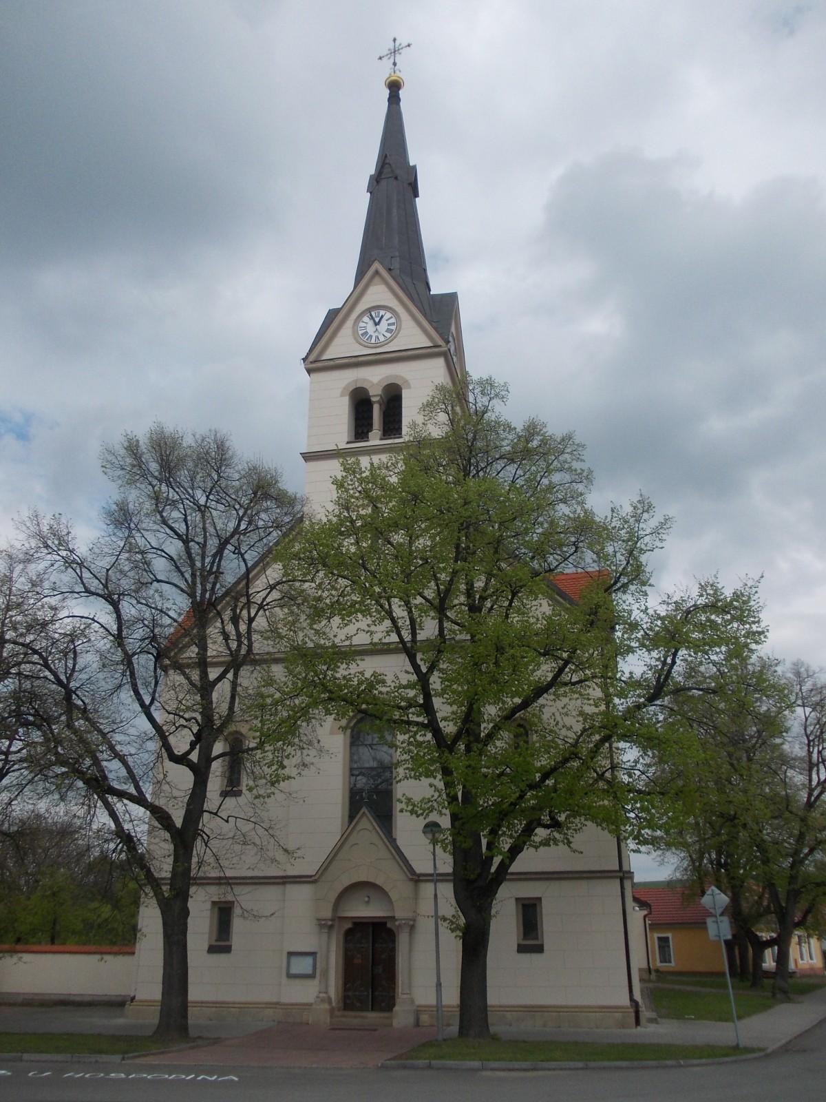 Staviteľom tohto kostola bol Leopold Slovák zo Strážnice. Hlavný oltárny obraz maľoval známy brnenský akademický maliar Emil Pirehan. Varhany zhotovil majter varhanár Josef Hauke z Uherského Hradiště. Kazateľnicu a hlavný oltár vyrobil stolársky tovarník Teodor Feeg z Brna. Tesárske práce viedol a prevádzal Martin Sochor zo Strážnice, dvere kostola sú dielom Františka Šimbíka z Lipova. Okna vyrobil a usadil sklenár z Viedne Ferdinand Kocián. Bohužiaľ sa ale nezachovala žiadna zmienka o autorovi krásnych vyrezavaných drevených pavlačí. Kostol bol postavený za 53 738 zlatých. Z tejto finančnej čiastky Matica náboženská pokryla 20 000, ostatné hradili farníci a obec sa touto stavbou veľmi zadĺžila. Z tohto dôvodu bolo na začiatku vybavenie kostola veľmi skromné, bolo úplne závislé na daroch veriacích.