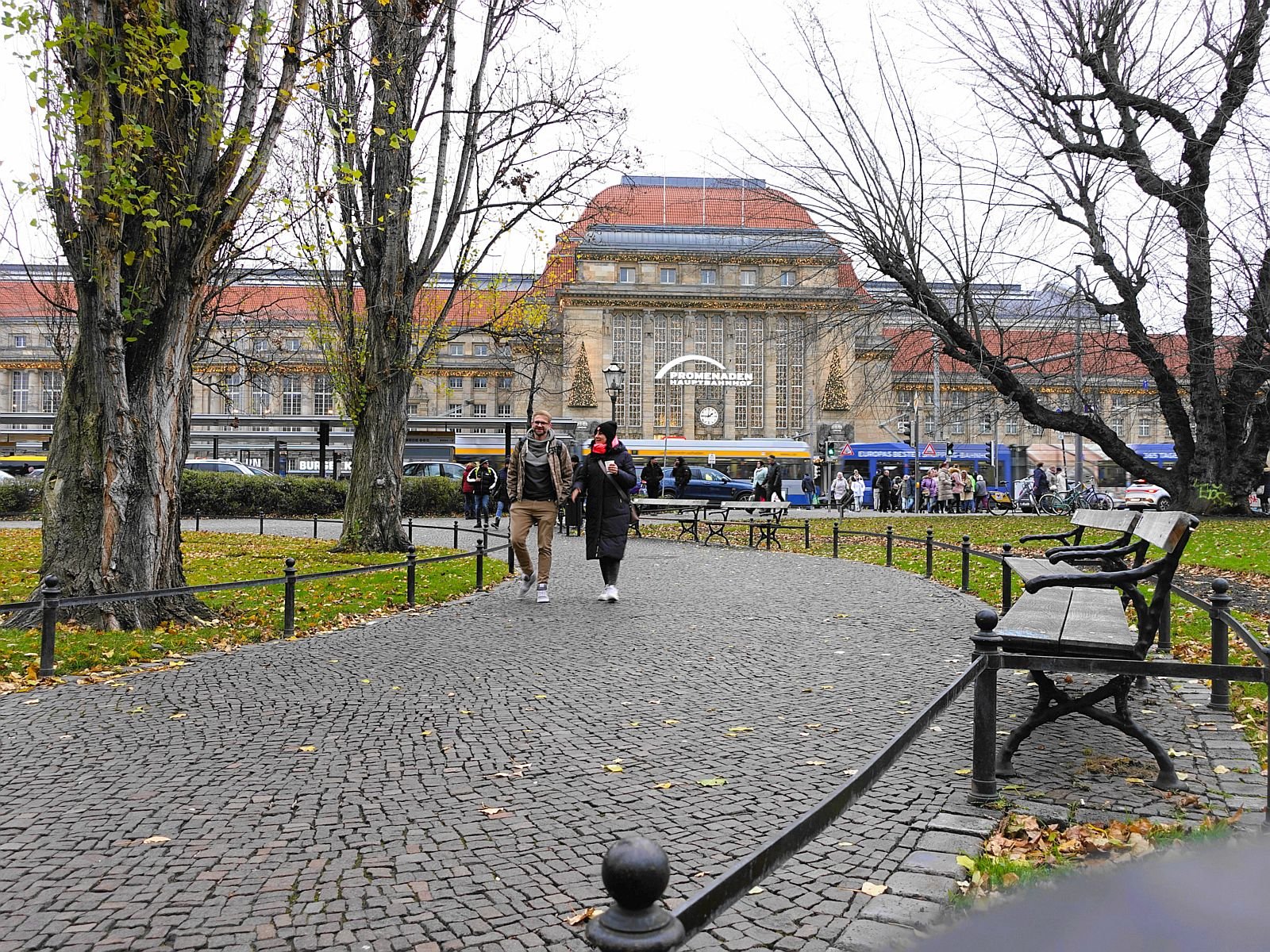 Lipské hlavní nádraží / Hauptbahnhof Leipzig je díky své rozloze největší v Evrope. Má 19 nástupišť. Otevřeno bylo v r. 1915. V areálu při rekonstrukci v r. 1997 zde vznikla tři patra promenád s více než 100 obchody. V době návštěvy bylo nádraží vánočně vyzdobeno.