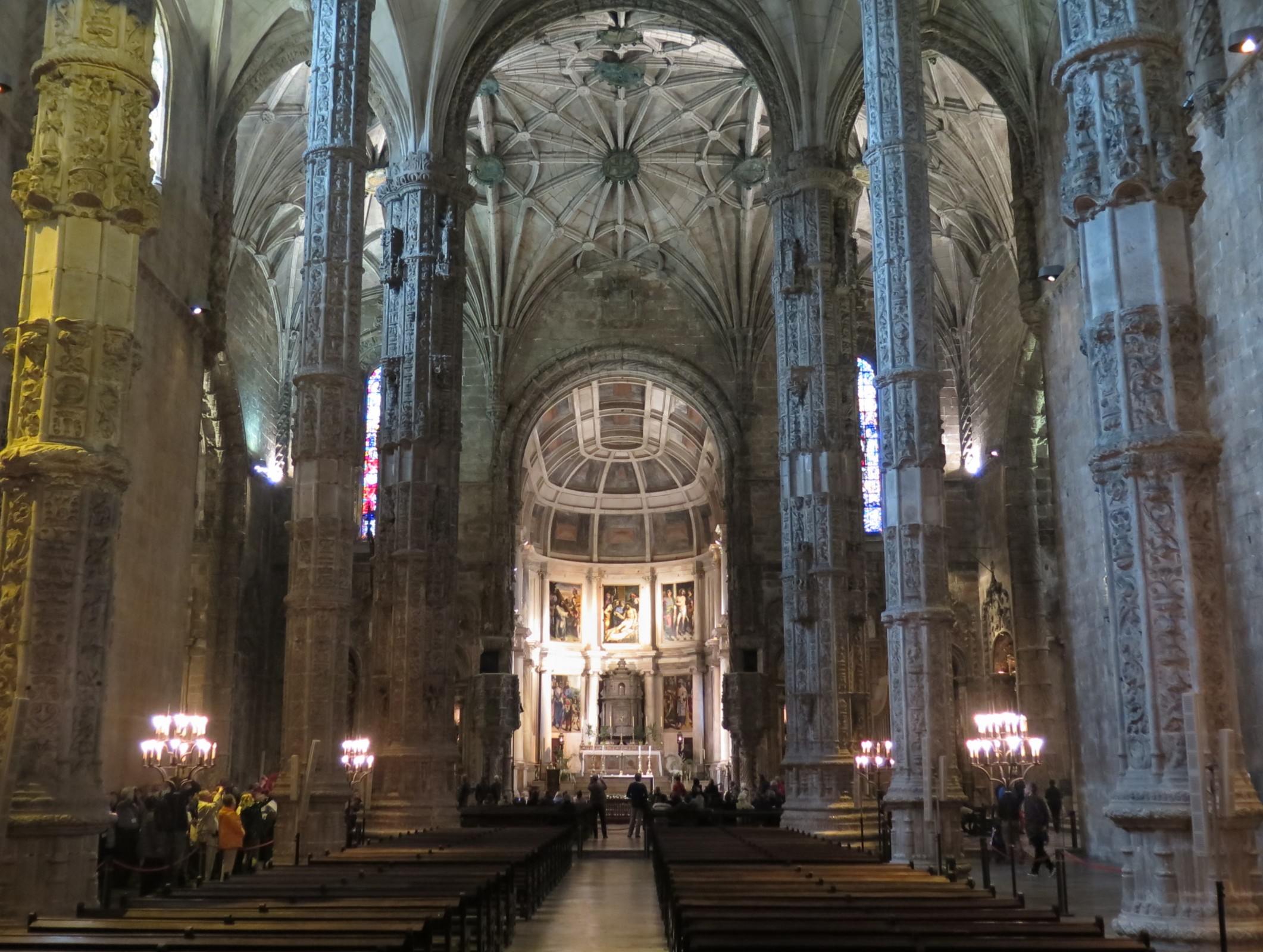 Lisabonský kostel Panny Marie, součást unescového kláštera jeronymitů, je považován za jednu z nejkrásnějších goticko-renesančních památek Portugalska. Stejně jako klášter pochází ze 16. století a svou interiérovou podobou má údajně připomínat palmový háj. Přívlastky pohádkový nebo čarokrásný mu přitom jistě plným právem přísluší. Současně se jedná o skutečnou učebnici architektury i významný pantheon, takže se zde dá trávit neuvěřitelné množství času a přitom je stále co objevovat. Vždyť o této vysoce zdobné stavbě se svého času říkalo, že se – alespoň co se hojnosti dekorativní výzdoby týče – jedná o absolutní vrchol v celém vesmíru. Kostel je – dnes už můžeme říct, že celkem překvapivě - volně přístupný, jen za vstup do sakristie se platí 1,50 euro a přístup na kruchtu (zpěvácký kůr) je součástí placené prohlídky kláštera sv. Jeronýma.