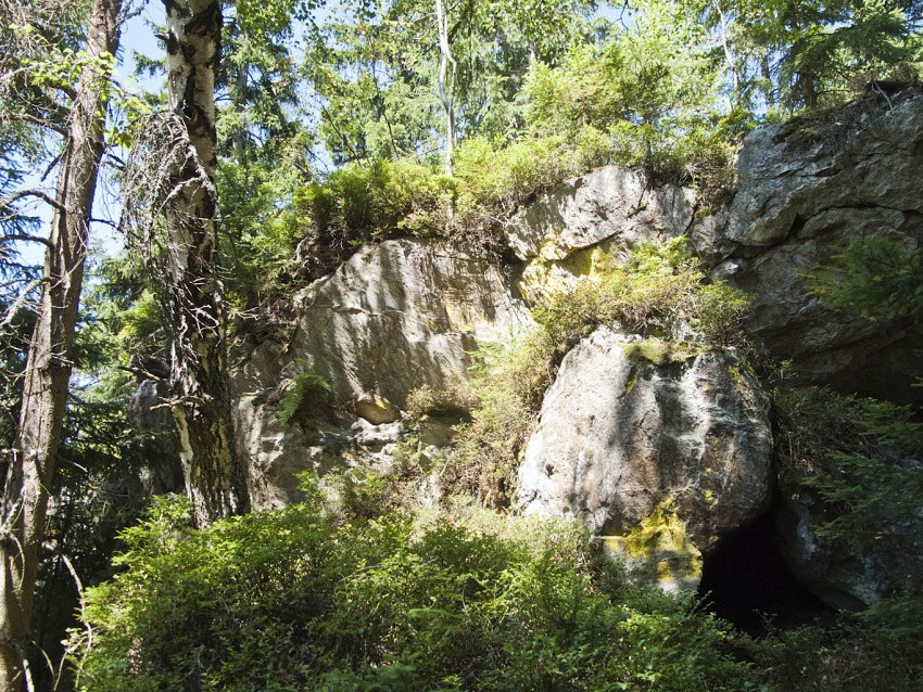 Při zkoumání mapy jsem onehdy objevil nejasnou lokalitu na Rýmařovsku. V některých dílech je naznačen symbol nějaké skály a povšechný nápis Liščí kámen u kterého ovšem nebylo zcela jisté, zdali patří k té skále nebo je to jen pomístní název. A protože je to oblast relativně nedaleká, přitom pro mě ne zcela známá, vypravil jsem se to zjistit. Lokalitu najdeme u lesní asfaltky od Staré vsi u Rýmařova do Karlova pod pradědem, resp. její odbočky. Najdeme ji v údolí Stříbrného potoka, který pramení pod Alfrédkou. Cesta je značená modrou cykloznačkou č. 6077. Samotná skála je v pokračování údolní cesty, modrá značka cca po 3km za Anenskou hutí odbočí Doprava, rovně pokračuje neznačená cesta k lovecké chatě a dá se po ní dojet i k samotné Alfrédce. Hledaná skála je cca 300m od křižovatky na levém břehu Stříbrného potoka. Protože jsem lokalitu zcela neznal, vzal jsem to trošku lesem nad potokem – aby mi něco neuniklo. Hned nad křižovatkou se dá najít ještě menší skalka bez nějakého označení (tu bych nazval podle bodavého hmyzu vosí), po výstupu na mýtinu jsem pak nedaleko objevil další skalku a to by měl být ten Liščí kámen. Při pohledu shora nic moc, spíš seskupení kamenů, musí se sestoupit pod skálu, pak je vidět, že je to celkem regulerní mrazový sroubek, o výšce stěny 15-20m. Ta je sice nerovnoměrná, ale celkem hezky je na ní vidět účinek horotvorných procesů. Jedná se o fylitovou horninu, což je vlastně částečně přeměněná jílovitá břidlice, tedy původně usazená hornina. Vrstvy jsou vztyčeny téměř kolmo a i celkem pokroucené, z toho můžeme usoudit na sílu která toto posunutí způsobila. Kolemjdoucí (či jedoucí) se klidně u skalky zastavit může, od cesty zas tak vzdálená není a nakonec se ke skále dá dobře dostat díky nedalekému můstku. Samotná lokalita je místem zaniklého horního revíru, jehož pozůstatky (jámy, zarostlé haldy) můžeme v okolí nalézt.