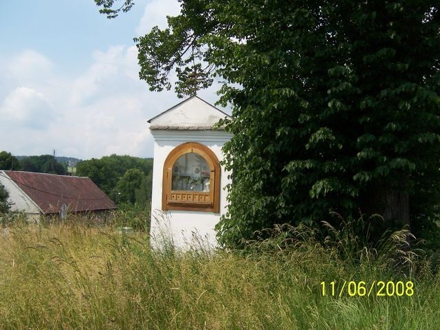 drobná zděná kaplička má půlkruhový půdorys a trojúhelníkový štít s výklenkem.Rustikální architektura je z poloviny 19.století.