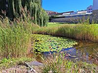 V zmíněném parku je možné navštívit příjemnou kavárnu Fér Kafe nebo si prohlédnout výklenkovou kapličku: