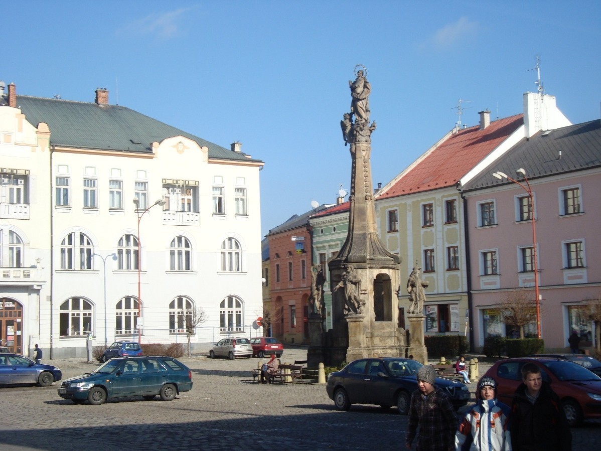 Morový sloup na Litovelském náměstí Přemysla Otakara byl postaven na památku ukončení moru, který postihl město v roce 1714, Sousoší postavil v barokním stylu olomoucký sochař Václav Render r. 1724. Ten se podílel na souboru barokních kašen v Olomouci i na výstavěn Sloupu Nejsvětější Trojice v Olomouci, který je zapsán na seznamu památek UNESCO.