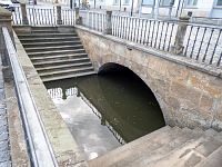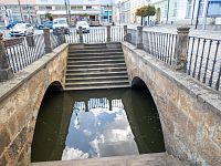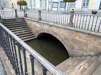 Za radnicí je téměř celý Nečíz ukrytý pod dlažbou náměstí Přemysla Otakara II. Až na jednu výjimku. Tou je balustrádami obklopené dvouramenné schodiště, kterým je umožněn volný přístup k vodě. Tyto schody svým způsobem nahrazují v centru Litovle nějakou kašnu, kdy by si místní nabírali životodárnou tekutinu. Dříve býval samozřejmě odkrytější daleko dříve, celé zakrytí náměstí proběhlo kolem roku 1700. Přístup k vodě býval ještě někde na místě, kde dnes je odchod z náměstí dnešní Husovou ulicí. Při revitalizačních pracích v roce 2014 byl v centru náměstí zhruba v průběhu Masarykovy ulice odkryt v podstatě zachovaný kamenný most z přelomu 14. a 5. století. Ten je ovšem zcela ukrytý současným stavem, ale jde vlastně o 3. nejstarší dochovaný kamenný most v ČR. No naštěstí mají v Litovli Svatojánský most, který je tak po mostech v Písku a Praze stále na třetím místě, hovořili bychom o mostech „viditelných“.