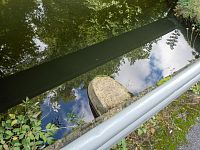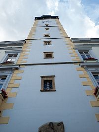 Při správném postavení se v Nečízu zrcadlí vysoká radniční věž.