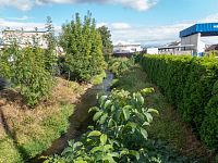 Dál se zraků ztrácí u továrních objektů Kimberly-Clark (výrobce hygienických zařízení).