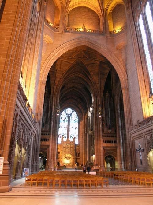 Anglikánská Liverpoolská katedrála (Katedrální kostel Ježíše Krista) je monumentální, 100 metrů vysoká stavba, jedna z dominant Liverpoolu.