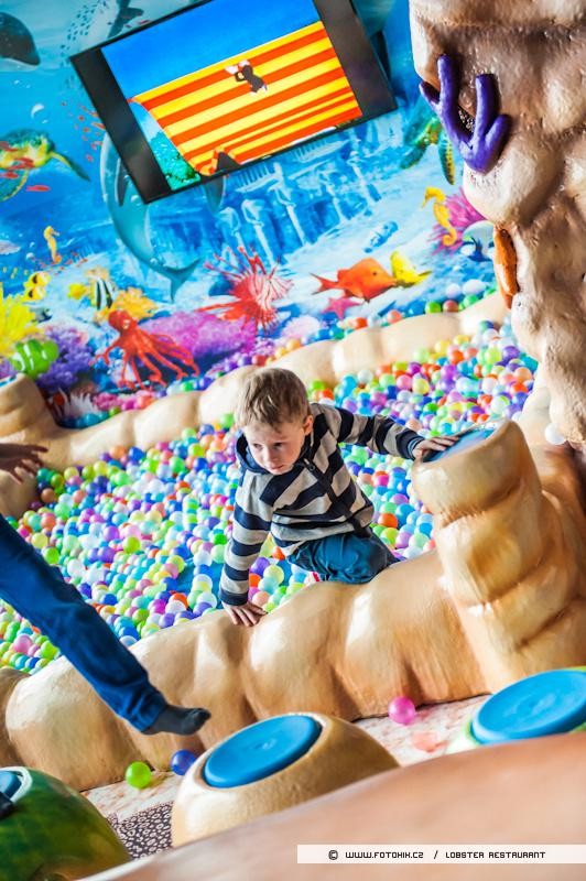 Pro děti jsme připravili spoustu zajímavých zpestření jinak nudných rodinných obědů a večeří, atraktivní dětský koutek ve stylu podmořského světa s interaktivními prvky, velké mořské akvárium plné zajímavých ryb a korálů, pestré a lákavé dětské menu, originální omalovánky, dětské stoličky a přebalovací pulty pro nejmenší jsou samozřejmostí.